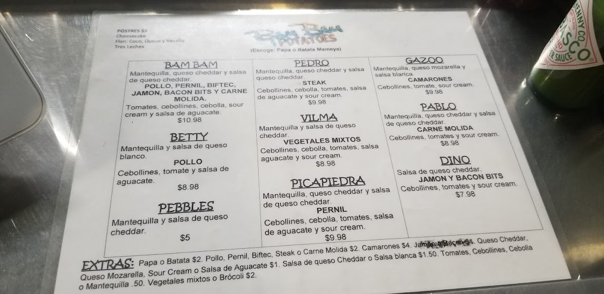 Reviews from patrons emphasize the massive portions and the friendly service that makes every visit enjoyable. With a menu that also features nachos and a selection of desserts like creamy Flan Vainilla and Tres Leches Nutella, Bam Bam Potatoes offers something for everyone. The option to call ahead and the inviting atmosphere further enhance its appeal, making it a must-visit spot for hearty, delicious meals.